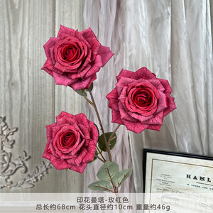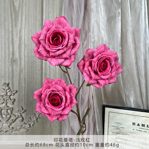 3つのプリントマンタローズ造花、家庭用リビングルーム用シルクフラワー装飾、フラワーアレンジメント、写真撮影小道具