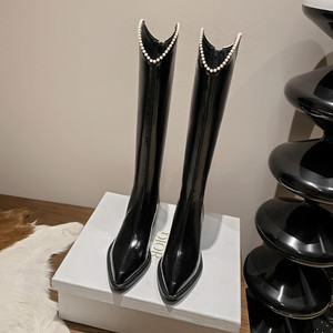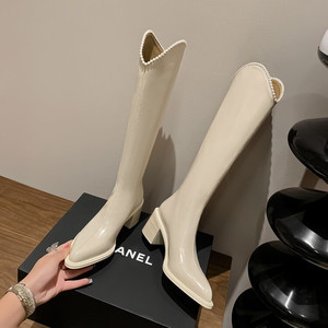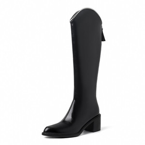 騎士靴の太足がやせているブーツの女性の小柄なベルベットの先のv口は膝の太さと弾力的なやせたブーツを超えていない