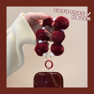 クリーム-ワインレッド + リボン + 毛玉ブレスレット