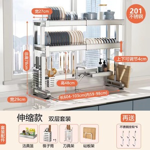 【単層66cm】豪華版 _ 主架刀架まな板架箸筒クレンジング棚 (フォークスプーン6フック)