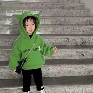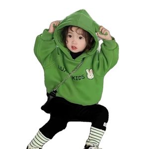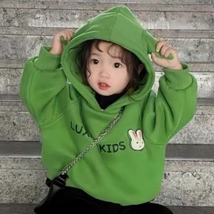 女の子の秋冬2023ベルベットの女の子の韓国風の暖かい帽子の上着の子供の服のセーター