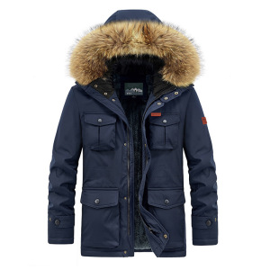 【21879】国境を越えた男性のベルベットの綿服の中の長さの帽子の綿服の男性式のカジュアルな大きいサイズの厚いコート