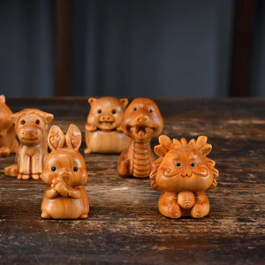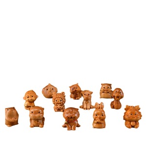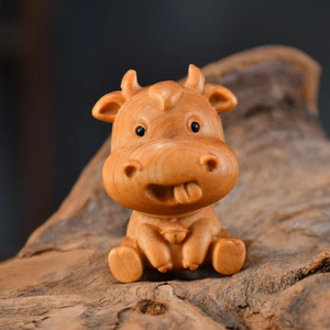 クスノキ工芸品、木彫り、干支ハンドピース、ペンダントフルセット、ねずみと牛の風景、ネットセレブの癒し系文具