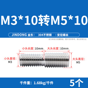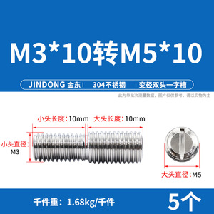 M4 * 10回転M10 * 10【5個】304変径二頭一字溝