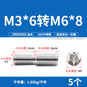 M3 * 6回転m 6*8【5個】304変径二頭一字溝