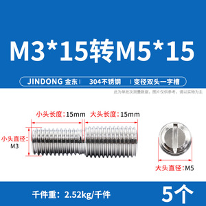 M 3*15回転m 5*15【5個】304変径二頭一字溝