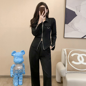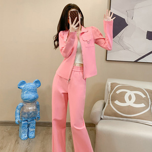 気質レジャースポーツスーツ女性春2024新作カーディガン長袖女神范広脚ズボン流行2点セット