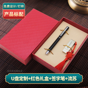 Uディスクカスタム赤いギフトボックスカスタム署名ペンギフトバッグ