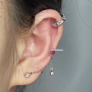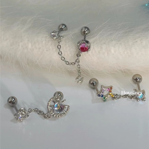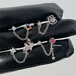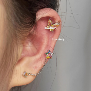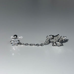 両耳用チェーンイヤリング、スイートでクールな蝶とオパールのイヤリング