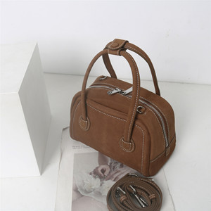 一層牛革バッグ 2025年新作 レトロ本革 ニッチデザイン ボウリングバッグ ショルダーバッグ クロスボディバッグ ハンドバッグ