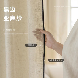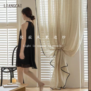 中世スタイルのリネンブラックエッジガーゼ紹興綿麻カーテン柯橋ガーゼカーテンフレンチレトロバルコニーリビングルーム寝室完成品
