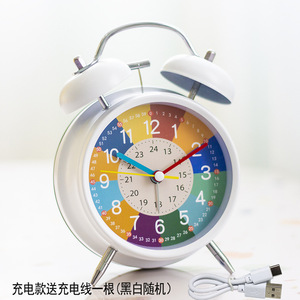 充電早教児童金属小目覚まし時計女の子男の子デスクトップ起き時計学生用専用学習時計