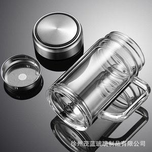二重ガラスコップは取っ手付きでお茶を入れます。