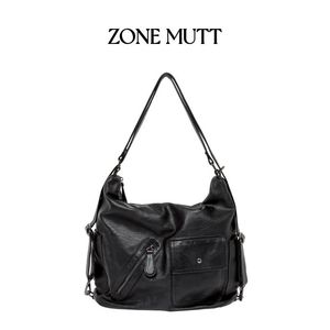 ZoneMutt | オリジナルギャルリュックレトロソフトレザー大容量マルチ背もたれ機能ワンショルダートートバッグ