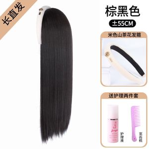 黒いツバキの花の長いストレート髪【ブラウンブラック】 + 2つのセット