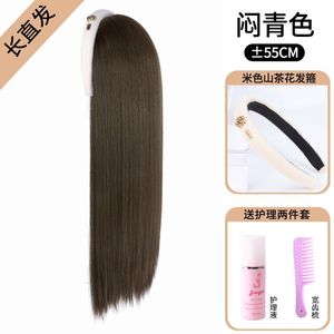 ベージュのツバキの花の長いストレート髪【退屈な青色】 + 2つのセット