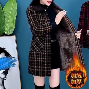 2025年秋の新作、おしゃれで厚手のベルベット素材のミドル丈コート。女性らしい上品な雰囲気で、着痩せ効果も期待できる、ママ向けのスタイリッシュなアイテムです。