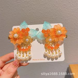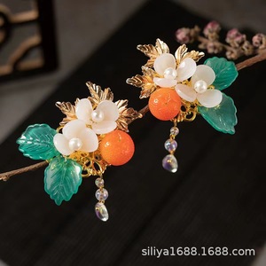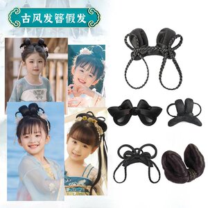 子供のかつらの時代劇の漢服の髪の一体式のカチューシャのかつらの古風な造形の演出の髪の包みの飾りの百合