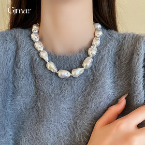フランスの軽豪華な不規則なバロック真珠のネックレスの小さい大衆の鎖の鎖の毛の鎖の軽豪華な高級感の女性