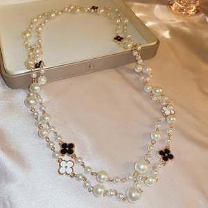 98 # ネックレス-ホワイトパール4層-ネックチェーン