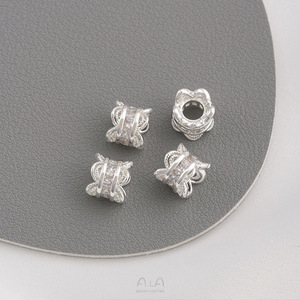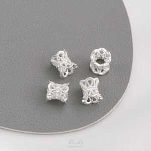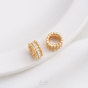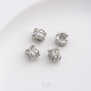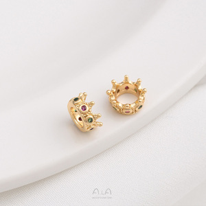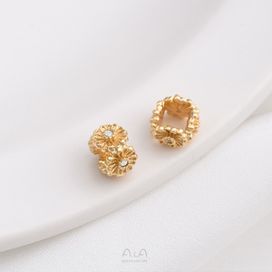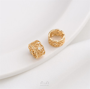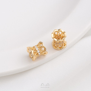 強保色14k包金入れジルコン大穴隔珠路通レース両面花托クラウンdiyビーズ部品