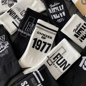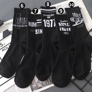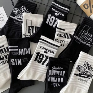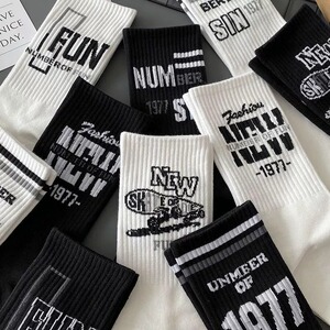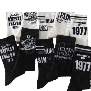 黒白文字柄ソックス メンズ クロスボーダー インス風 トレンド スポーツ ミドル丈ソックス 新作 トレンド カップルソックス ロングソックス 諸曁