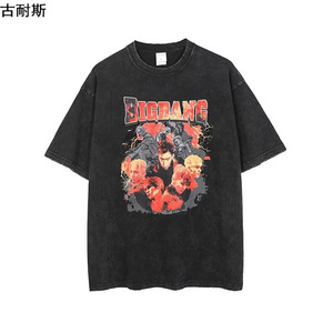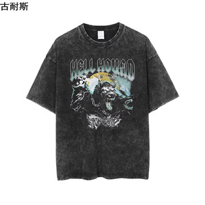 国境を越えてアメリカのレトロな重さの男性が水を洗って古い半袖のプリントを作って、五分袖の純綿の潮流を合わせます。