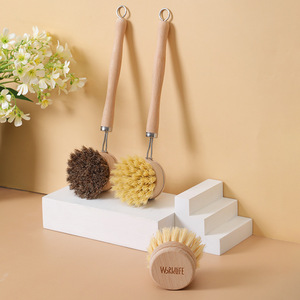 天然の剣麻の鍋のブラシは頭の柔らかい毛を換えて鍋の皿の鉄鍋のココナッツの植物の馬の毛を洗うことができて清潔で鍋のブラシをつけません。