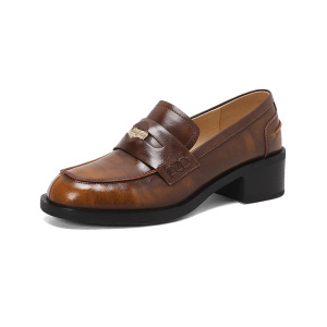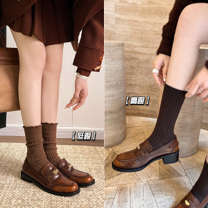 紫金家~甘い雰囲気!インスタ映えする厚底ローファー、2種類のヒール高さ、深めの履き口のシングルシューズ
