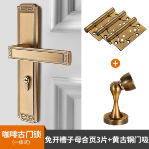 新中国式レトロ室内寝室ドアロック一体型ロック古銅色トイレドア静音ドアロック木製ドアハンドル