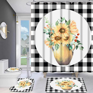 デジタルプリント防水浴室トイレ格子プリント色合わせポリエステル浴室乾湿遮断カーテンメーカー卸売り