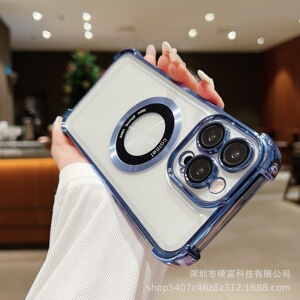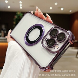 Iphone15promax携帯電話ケースアップル宇宙ケース四角転倒防止レンズ膜磁気吸引拡大鏡14