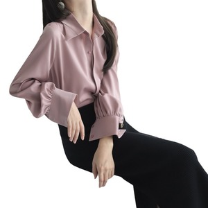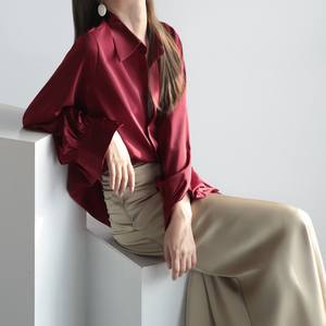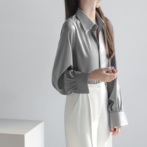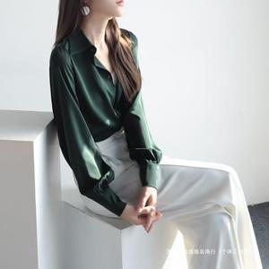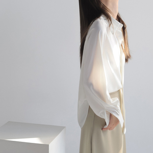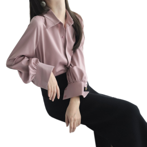 サテン長袖シャツ女性秋新作24デザイン感小衆シャツシンプルな雰囲気の純色がやせて見える上着