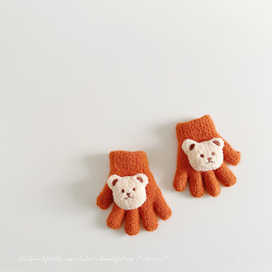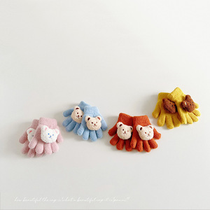 二重の厚い厚いかわいい熊の手袋の冬のベルベットの5本の指の手袋の子供の漫画の保温の赤ちゃんの手袋