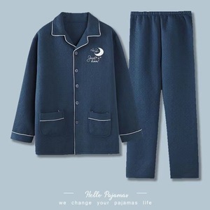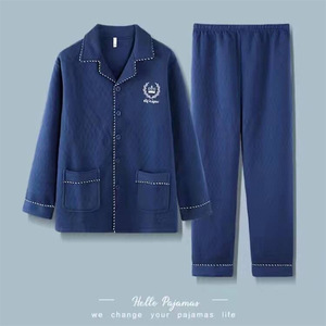 3層の空気の層の綿の100% のパジャマのスーツの男性の秋冬のアルファベットの刺繍は部屋の服を着ることができます。