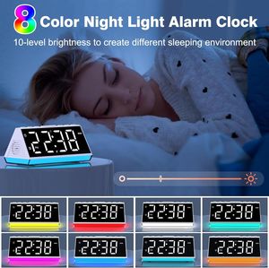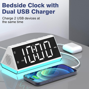 白い最新の三角のテーパーの底のまぶしい夜の明かりの暖かい欧米の寝室のデスクトップの小さい目覚まし時計の成人の学生
