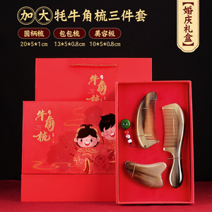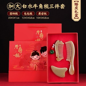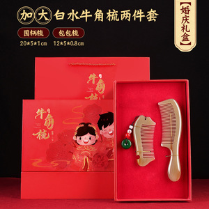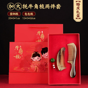 【ウェディングギフトボックス】ヤク角拡大20cm丸柄コーム+13cmイルカムーンコーム+掻き板+安全バックルペンダント+ハンドバッグ