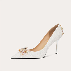 708-A85 ラインストーンハイヒールフレンチスタイル気質ブライダルシューズハイヒールレース新しい日常ウェアラブル宴会ヒール靴
