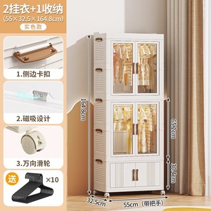 65CM面幅-1段タンス2段収纳ボックス【ハンガー10个プレゼント】