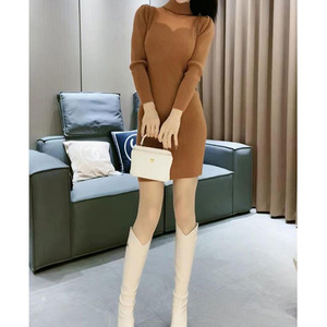 フランスの半高襟のニットワンピース秋冬の新型の中にお尻のスカートの小さい背を包んでスカートの婦人服のファッションを打ちます。