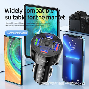 車載充電器 1対4 63W急速充電 マルチポート 車載充電器 Huawei Apple対応 車載充電ヘッド PD急速充電