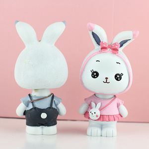 創意生肖喜楽兎首を横に振って車の置物が可愛いです。