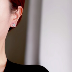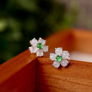 天然ミャンマー産白翡翠イヤリング、イヤーバックル、イヤークリップ、翡翠小花、純銀イヤリング、ジュエリー、ライブ配信用卸売