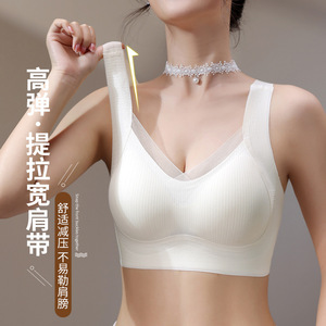 無痕暖肌反重力提拉網紗下着女性無鋼輪v型ソフトサポート快適美背文ブラジャー