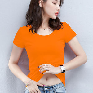 赤い肩の半袖のtシャツの女性の夏の修身の婦人服の丸首の半袖の底のシャツは年齢を減らして身の上着の卸売りを身につけます。