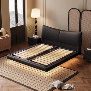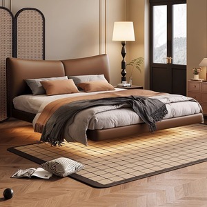 現代のシンプルな新型の本革懸濁ベッドの主な寝台の小戸型の香奈の軽い豪華なイタリア式の極めて簡単なダブルベッドの家具