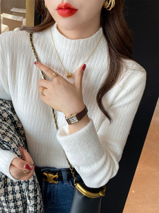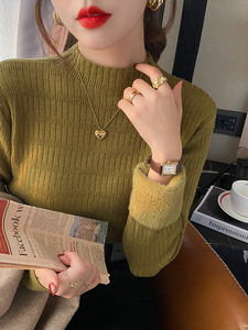 半高襟の厚い保温の中に一体の毛のニットのセーターを掛けます。