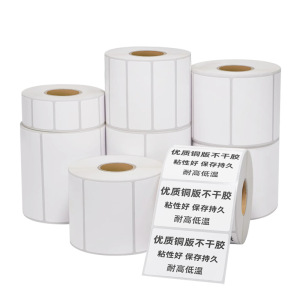 銅版紙不乾性空白ラベル炭素バーコード付きリール印刷シール銅版ラベル紙メーカー卸売り