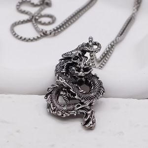 ファッション創意ステンレス方珠ネックレス高級感国風神龍ペンダント街頭潮男百合アクセサリー卸売り