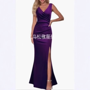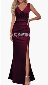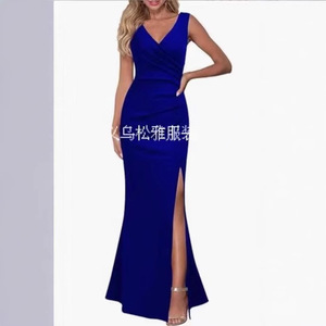 2024年クロスボーダーレディースノースリーブvネックオープンフォークタキシードカクテルパーティーロングドレス